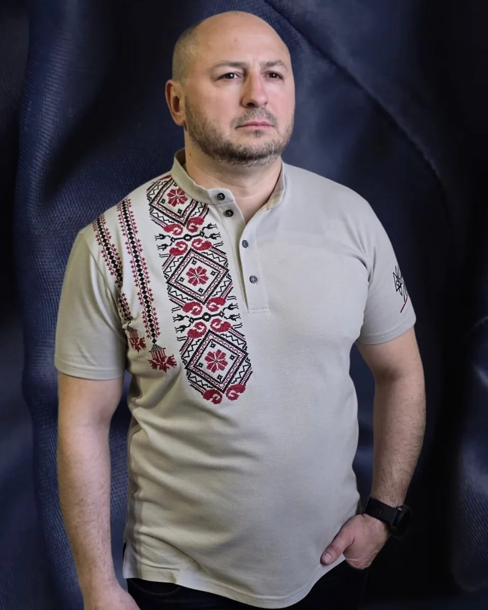Купить футболку поло з червоним орнаментом в Днепре, доставка по Украине