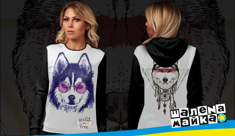 Купить свитшот хаски - wild and free в Днепре, доставка по Украине